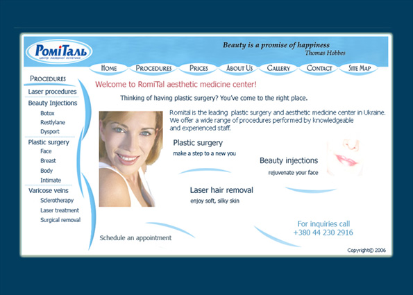 Для відомого київського центру пластичної хірургії та лазерної естетики «Роміталь» ми створили сайт, спрямований на англомовних клієнтів, які хочуть скористатись усіма перевагами якісного медичного обслуговування за помірними цінами.